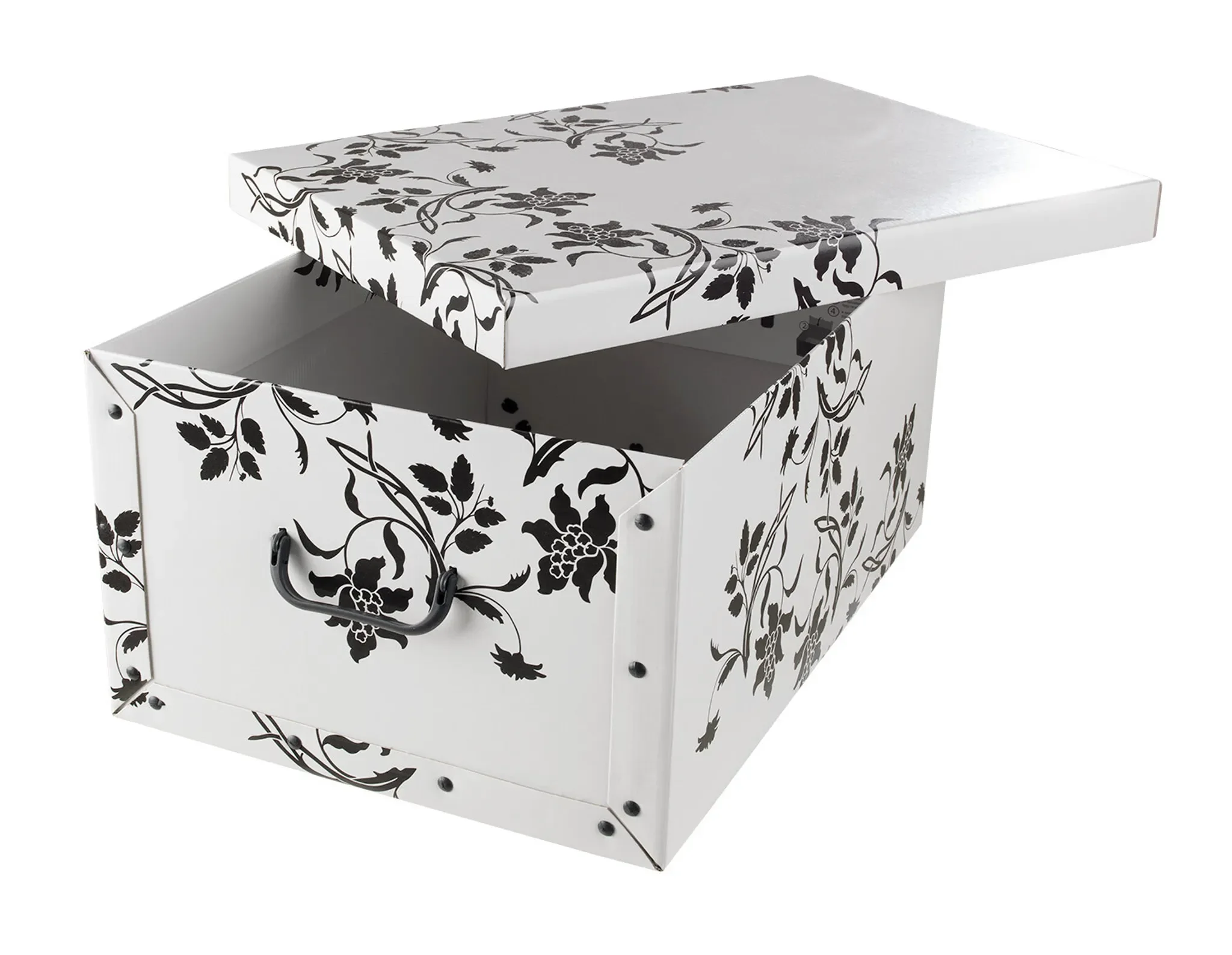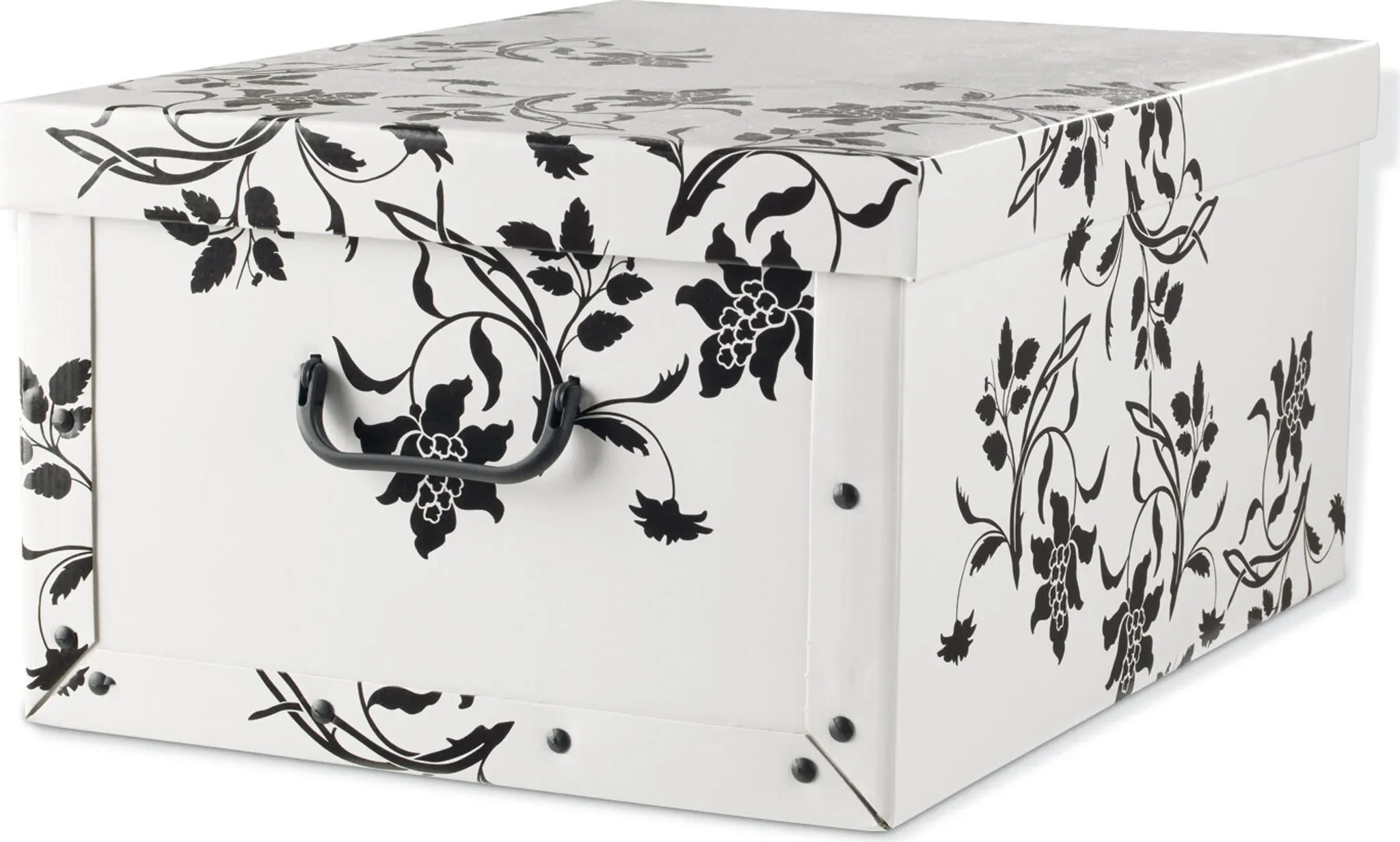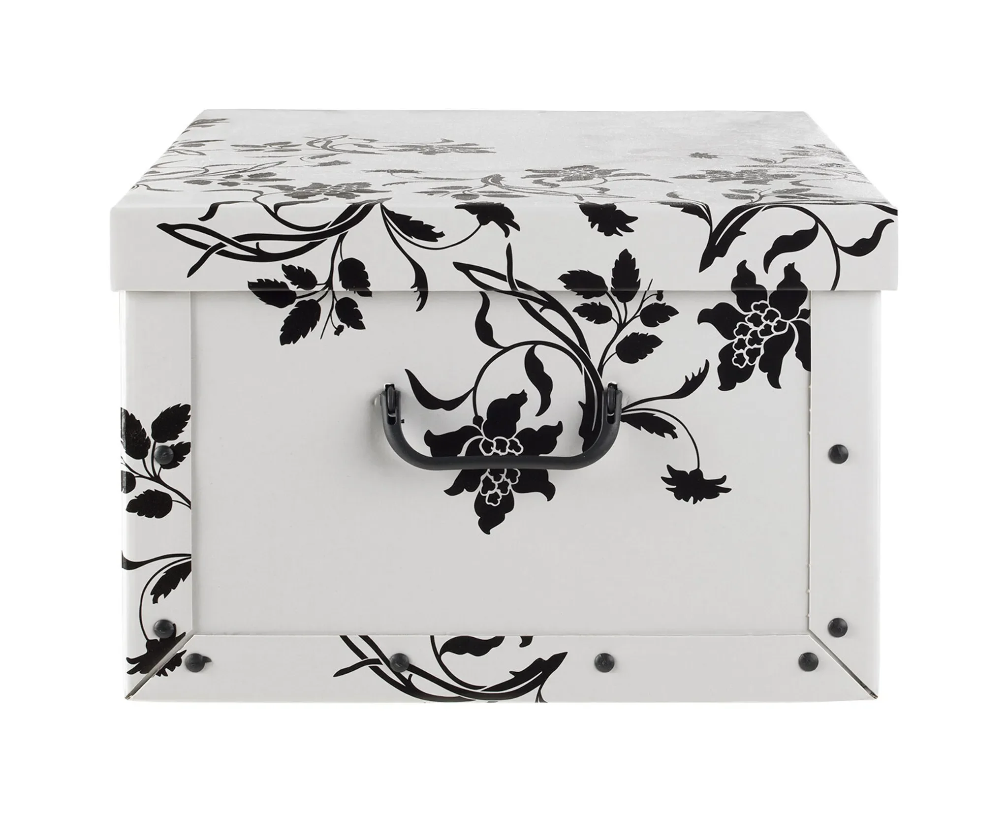 Aufbewahrungsbox mit Deckel – 51 × 37 × 24 cm, Weiß, Rankenmuster