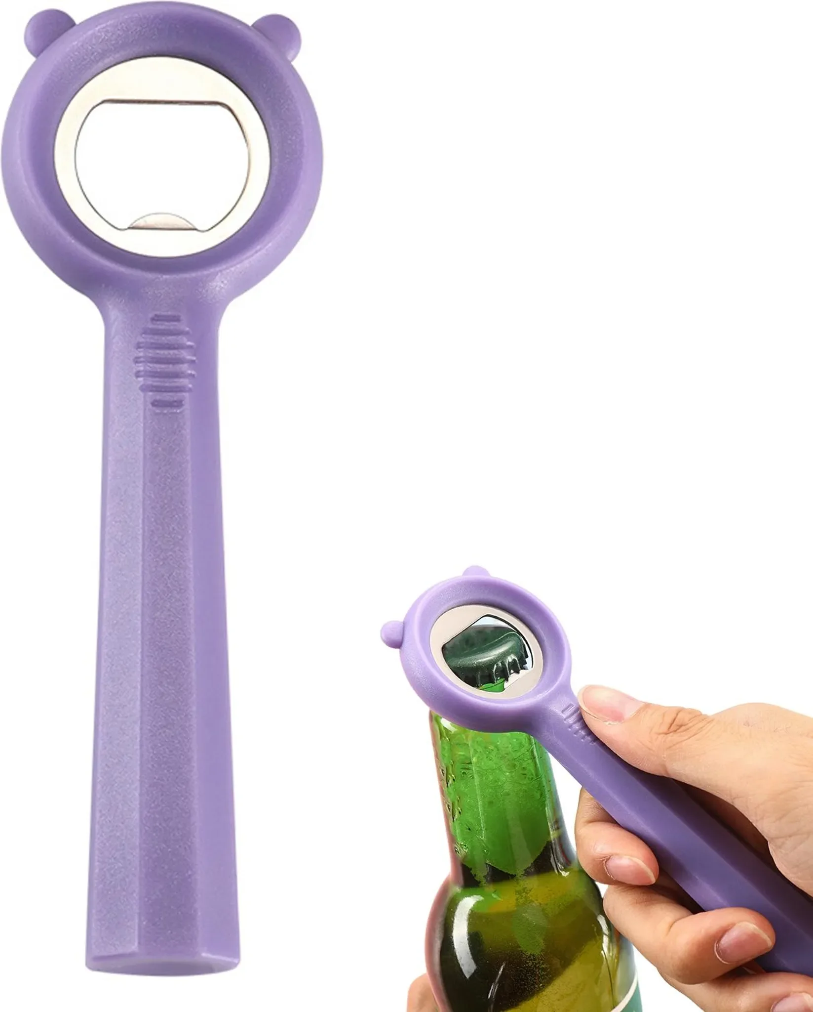 Der ergonomisch geformte Griff liegt angenehm in der Hand und reduziert den Kraftaufwand beim Öffnen. Dank der einfachen, intuitiven Handhabung genügt ein leichter Druck, um Flaschen schnell und sauber zu öffnen – geeignet für jede Altersgruppe.