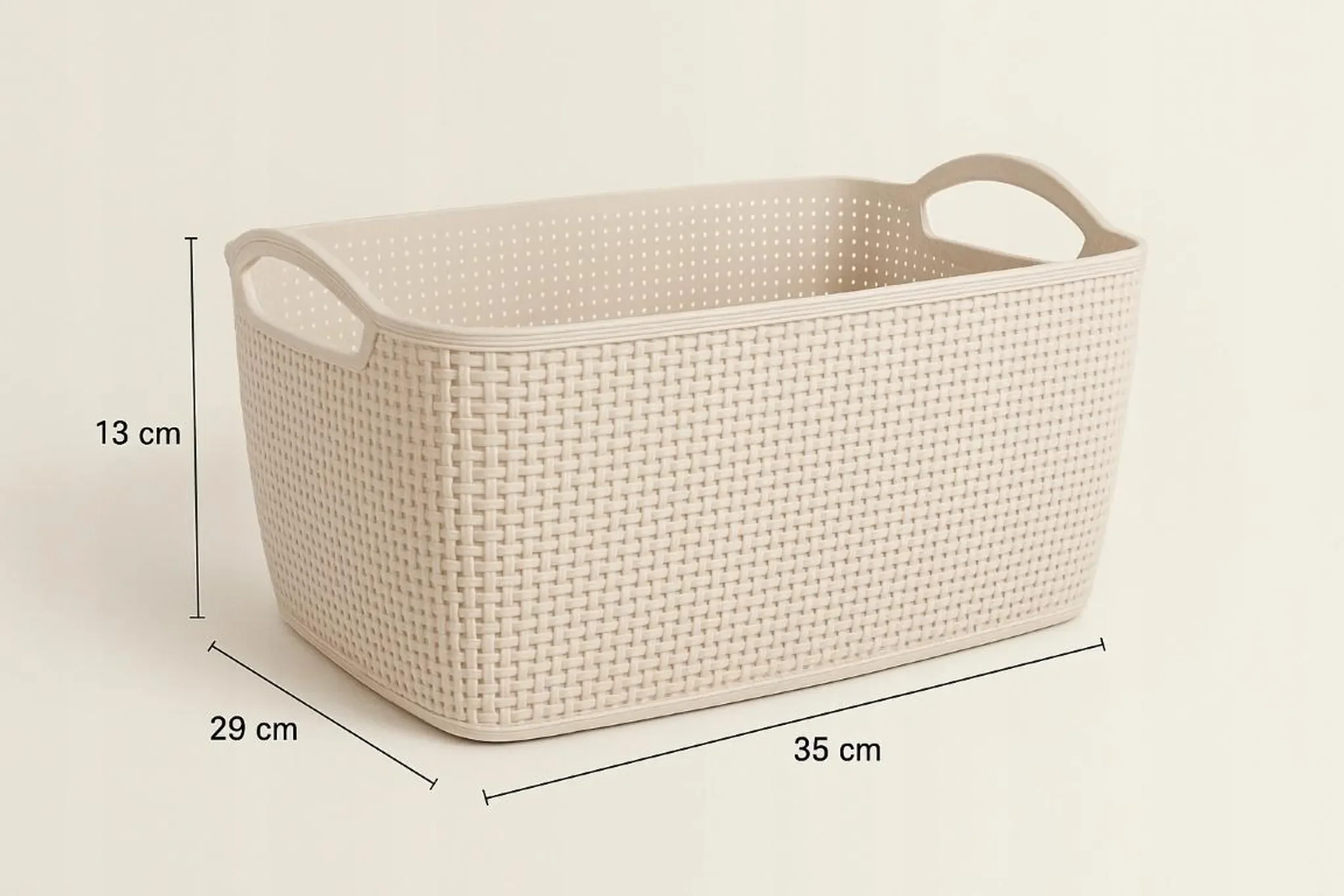 Kunststoffkorb geflochten – Beige, 35 × 29 × 13 cm