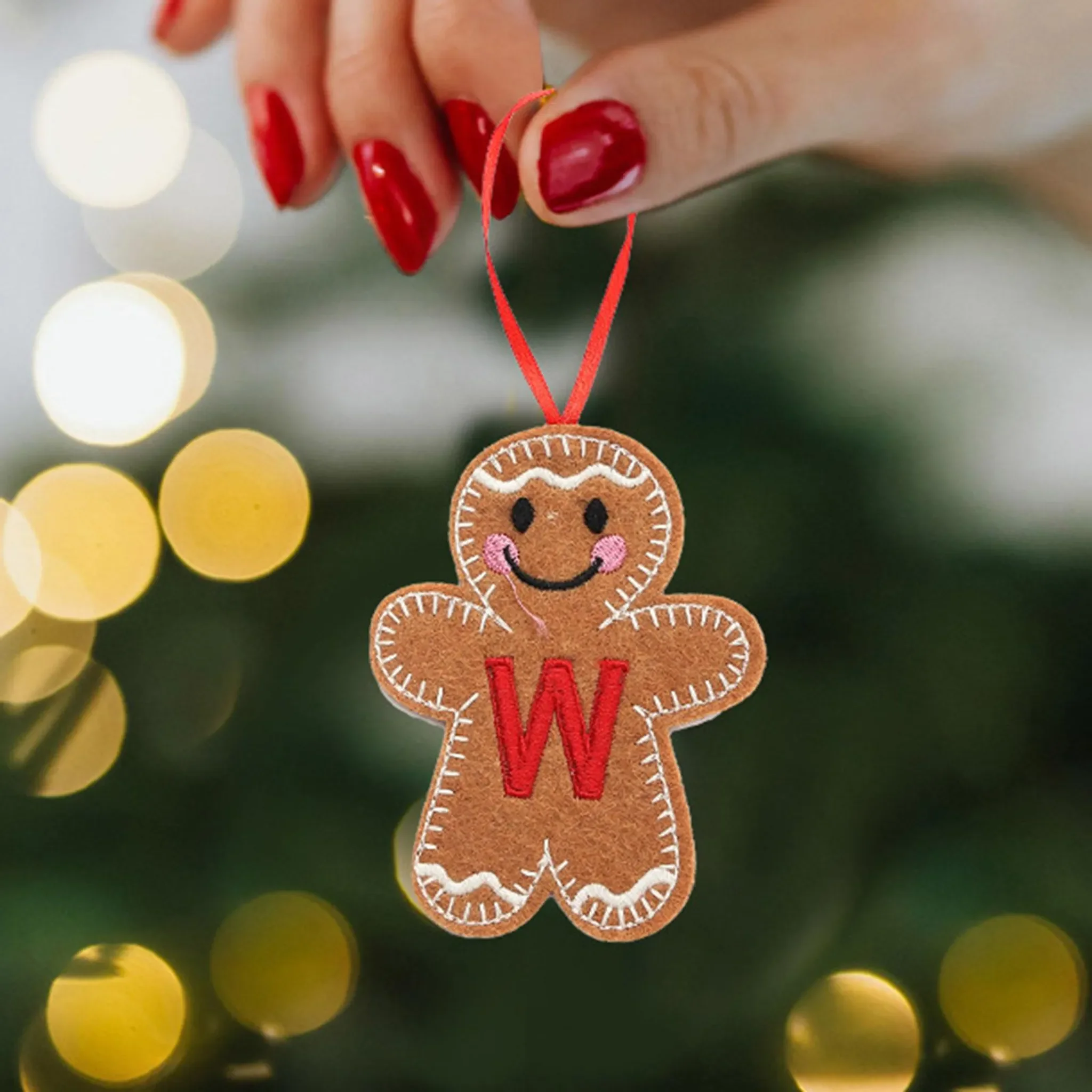 Diese liebevoll gestalteten Lebkuchenmann-Ornamente in Alphabetform verleihen Ihrer Weihnachtsdekoration eine persönliche und verspielte Note. Mit den Buchstaben von A bis Z lassen sich Namen, Familieninitialen oder festliche Botschaften wie „Frohe Weihnachten“ kreativ umsetzen.