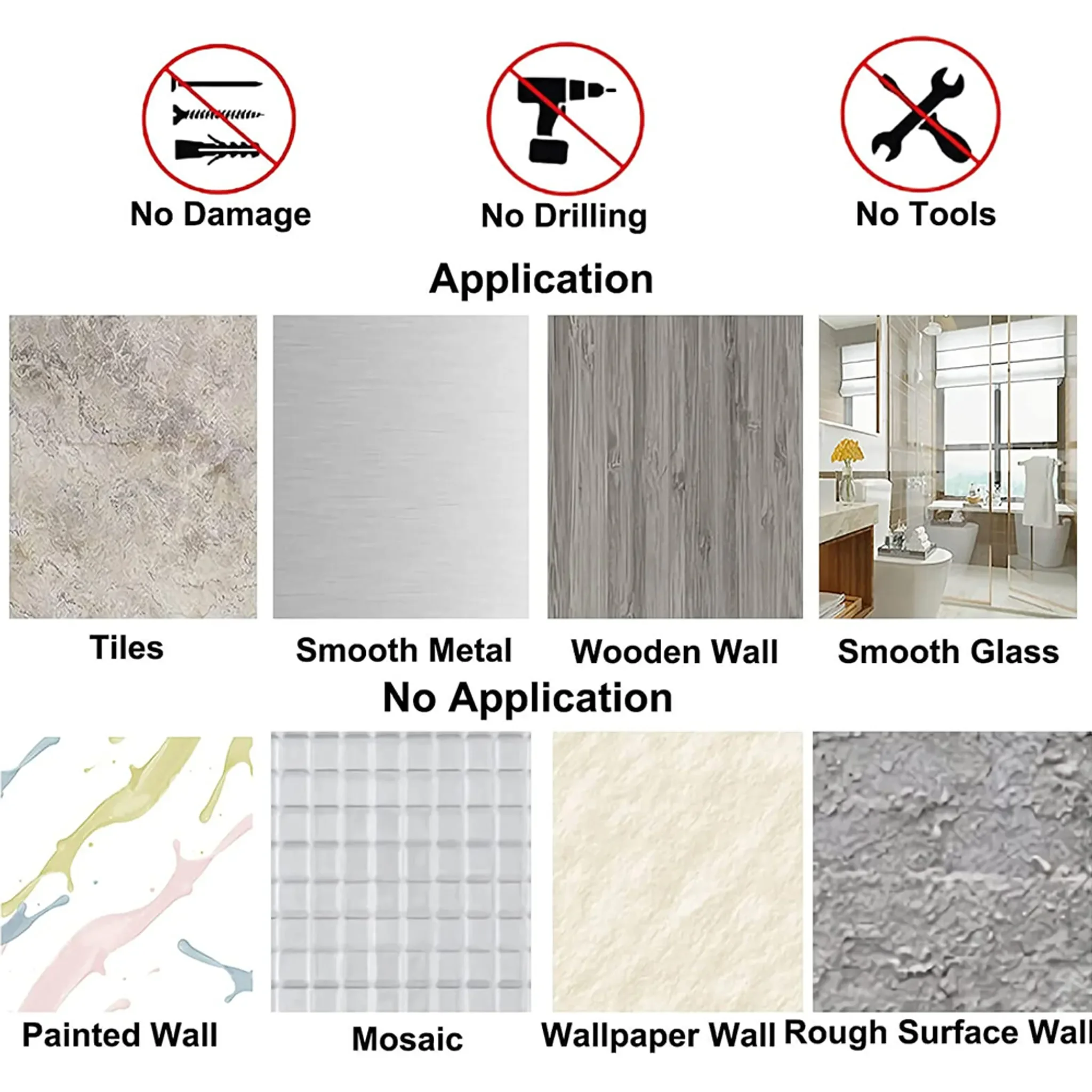Dank der selbstklebenden Befestigung lässt sich das Schlüsselbrett schnell und sauber auf glatten Oberflächen wie Fliesen, Spiegeln oder Türen montieren – ganz ohne Bohren oder Werkzeug. Das schlichte Design in Grau fügt sich harmonisch in moderne Wohn- und Arbeitsräume ein.