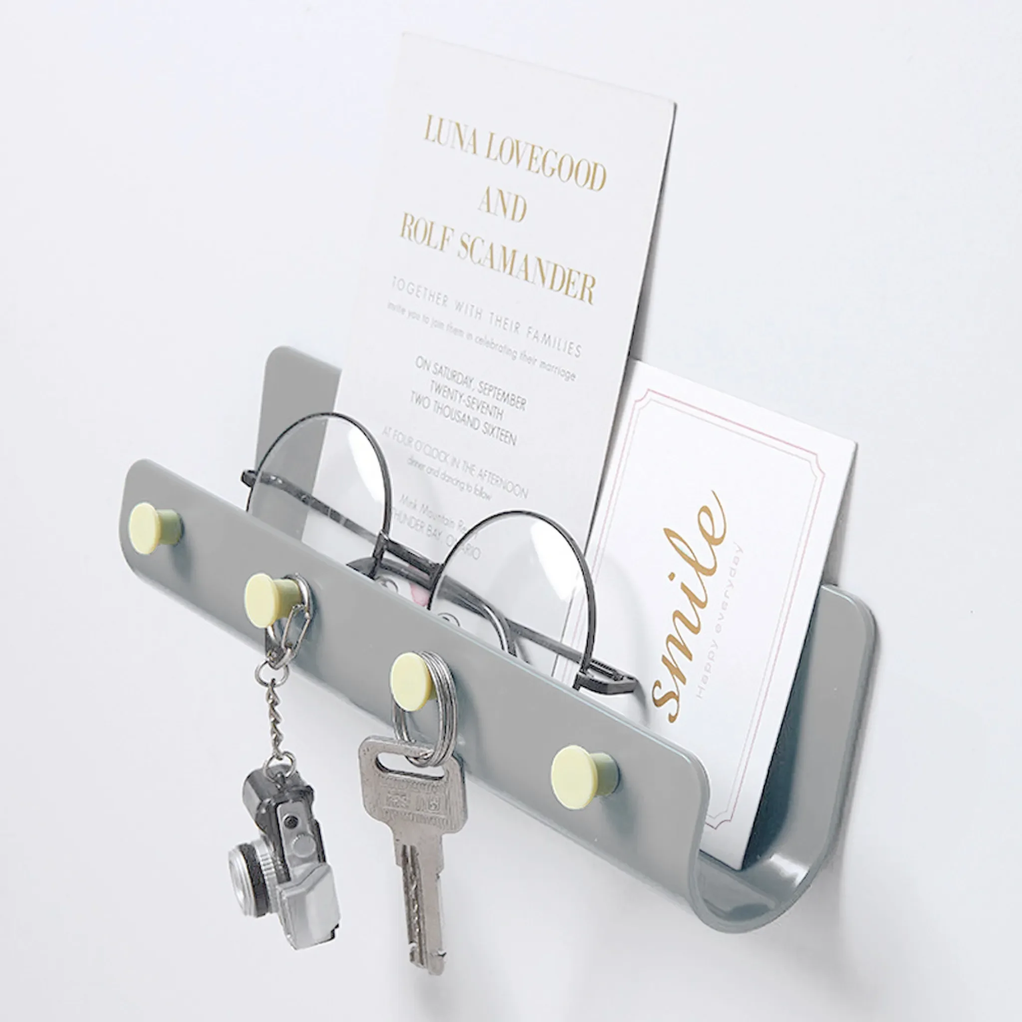 Dieses minimalistische Schlüsselboard kombiniert eine praktische Ablage mit vier stabilen Schlüsselhaken und sorgt für Ordnung im Eingangsbereich. Der integrierte U-förmige Korb eignet sich ideal für Post, Notizen oder kleine Alltagsgegenstände, die Sie beim Verlassen des Hauses griffbereit haben möchten.