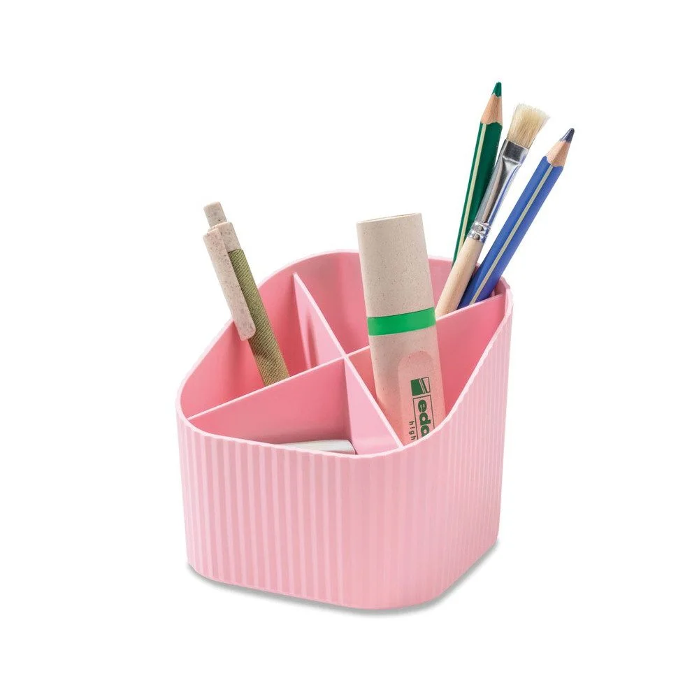 Der Schreibtischköcher HAN Re-X-LOOP in sanftem Pastellrosa vereint zeitgemäßes Design mit nachhaltiger Materialwahl. Gefertigt aus 100 % recyceltem PIR-Kunststoff (Polypropylen) unterstützt er aktiv den verantwortungsvollen Umgang mit Ressourcen.