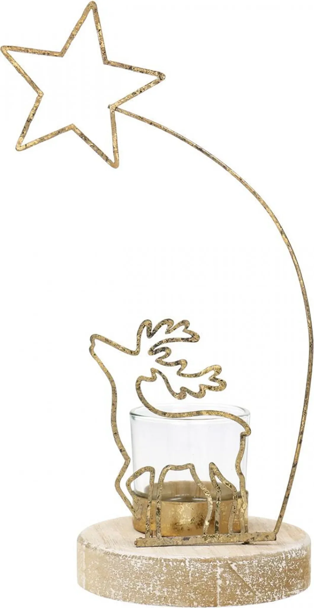 Teelichthalter Rentier & Weihnachtsstern – Metall, Gold, 24 cm